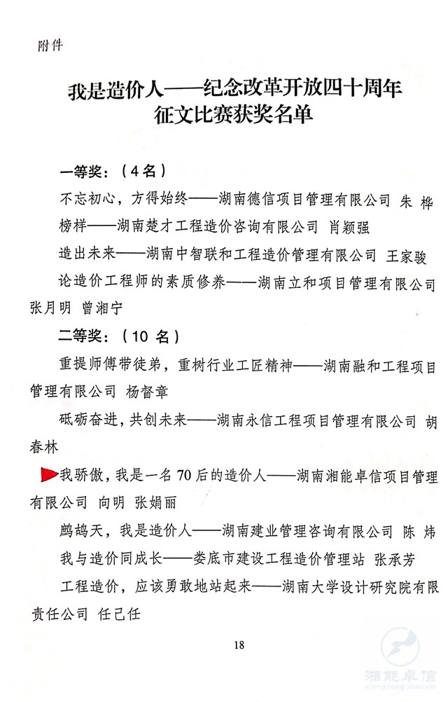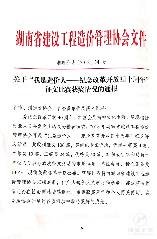 關(guān)于“我是造價(jià)人—紀(jì)念改革開放四十周年” 征文比賽獲獎(jiǎng)情況的通報(bào)
